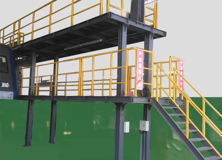 三層整備作業(yè)平臺(tái)適用于各型機(jī)車檢修整備作業(yè),方便檢修整備作業(yè)人員對(duì)機(jī)車車上部件的檢查、檢測(cè)、清潔保養(yǎng),保證檢修整備人員上下機(jī)車的安全。