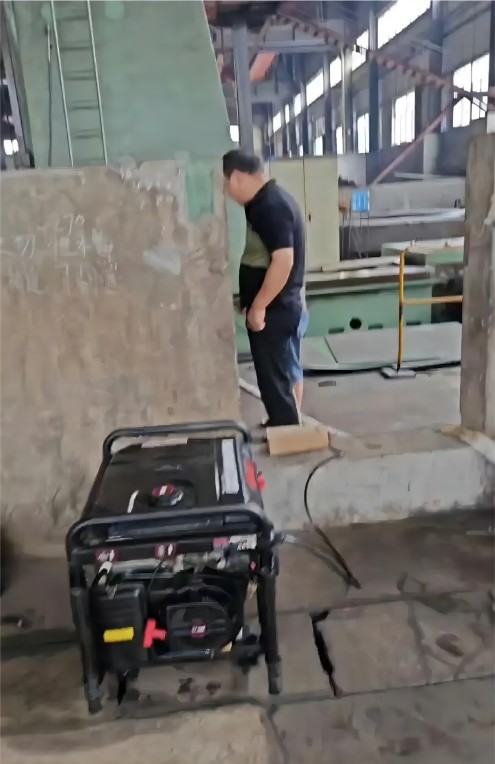 9點左右,車間突發(fā)停電,設備面臨被水浸的危險。劉美林總經(jīng)理果斷決策,采購發(fā)電機和配件,搶險團隊安裝調試后及時抽出立車地下水。因一臺不夠,喻斌也冒雨采購了一臺大功率發(fā)電機,為搶險工作提供了有力支持。